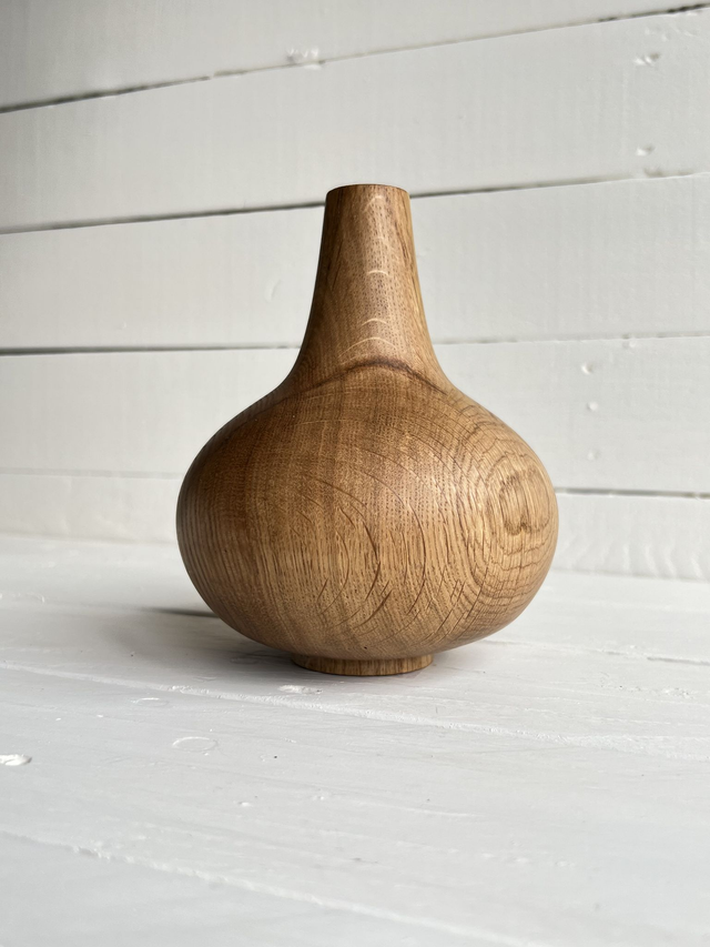 These stunning English Oak vases are individually handcrafted to order in my workshop. With their fluid curves and striking natural grain patterns, each one is completely unique.